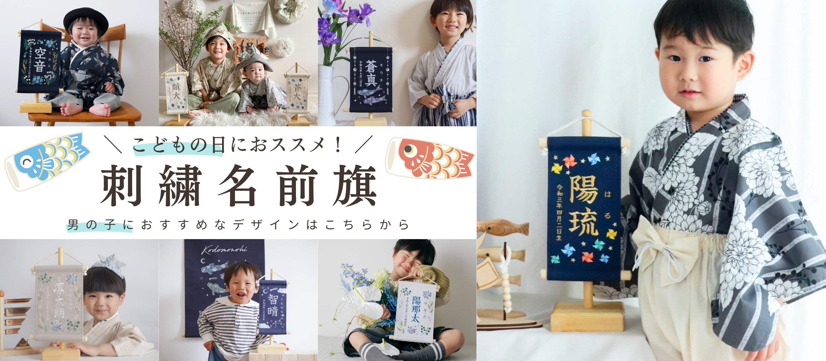 【スタンド付】刺繍名前旗【鯉のぼり2|オフホワイト|小サイズ】命名書 こどもの日 端午の節句 五月人形 男の子 おしゃれ