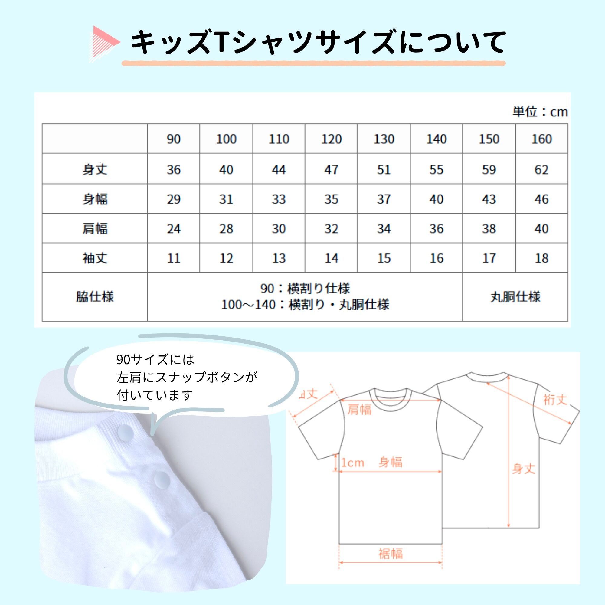 キッズサイズ(90~160)もご用意しておりますので