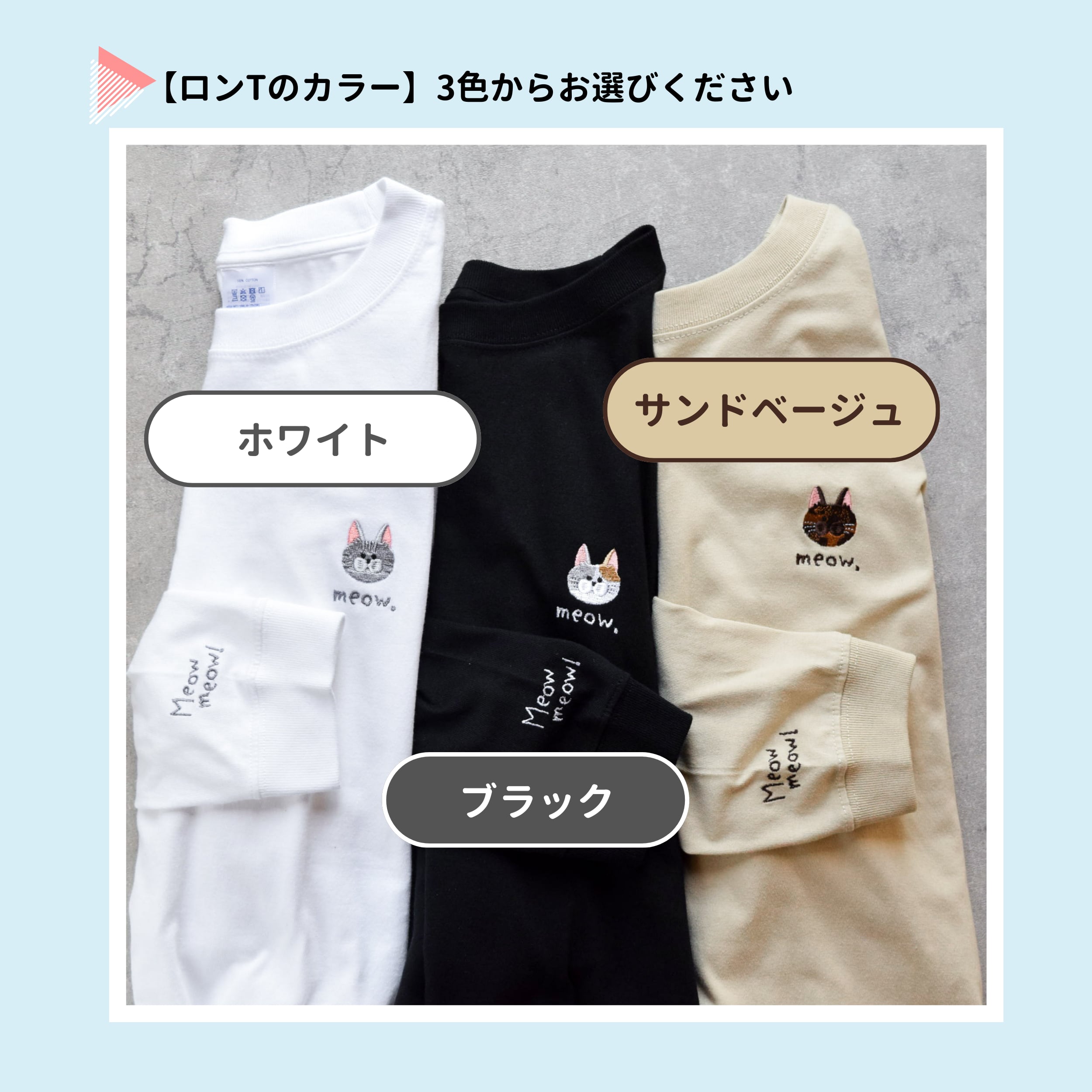 【2025新作】選べる猫29種!刺繍ロングスリーブTシャツ 名入れ可【選べる3色】うちの子グッズ ねこ 長袖