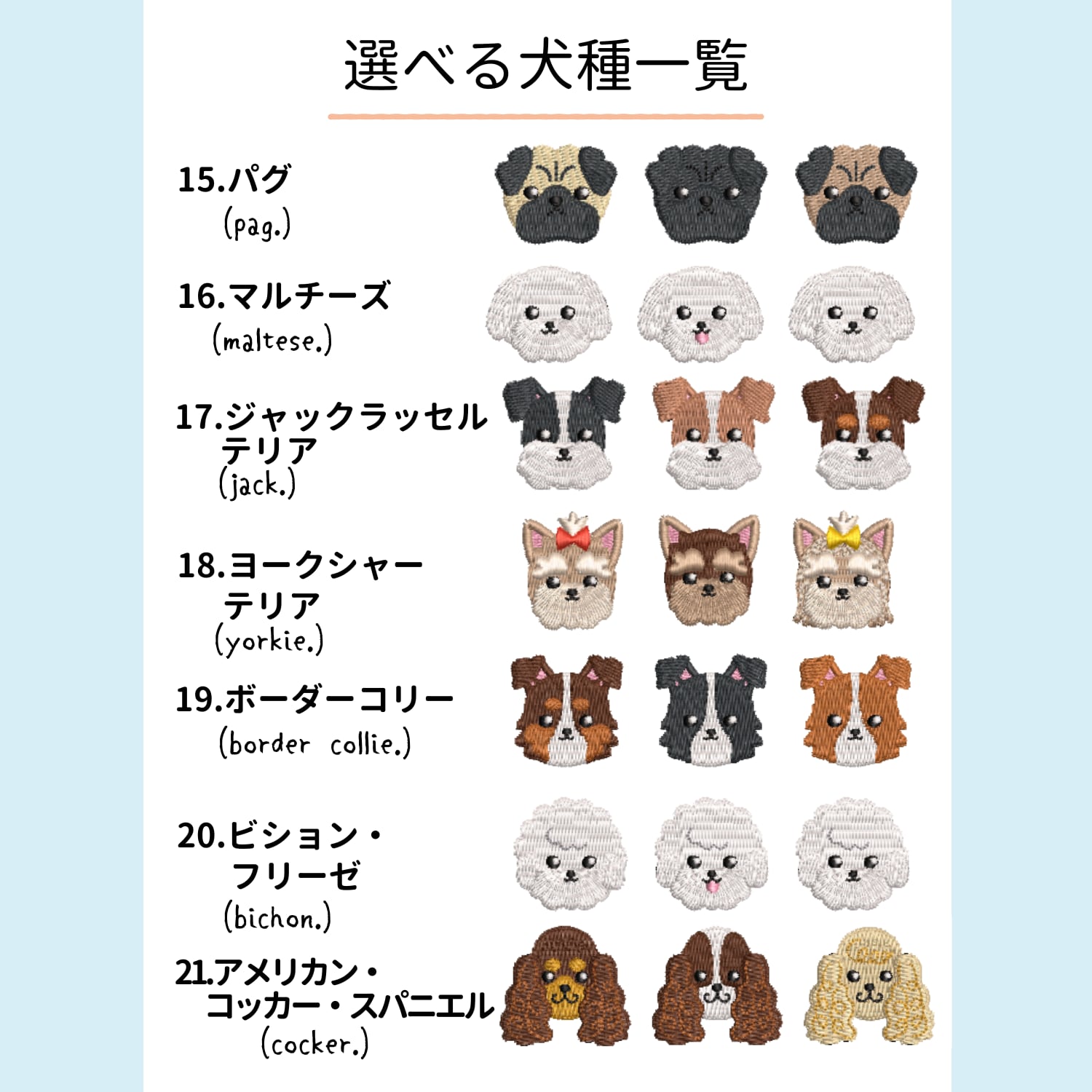 小さな刺繍のワンちゃんが、3匹行儀よく並んだ