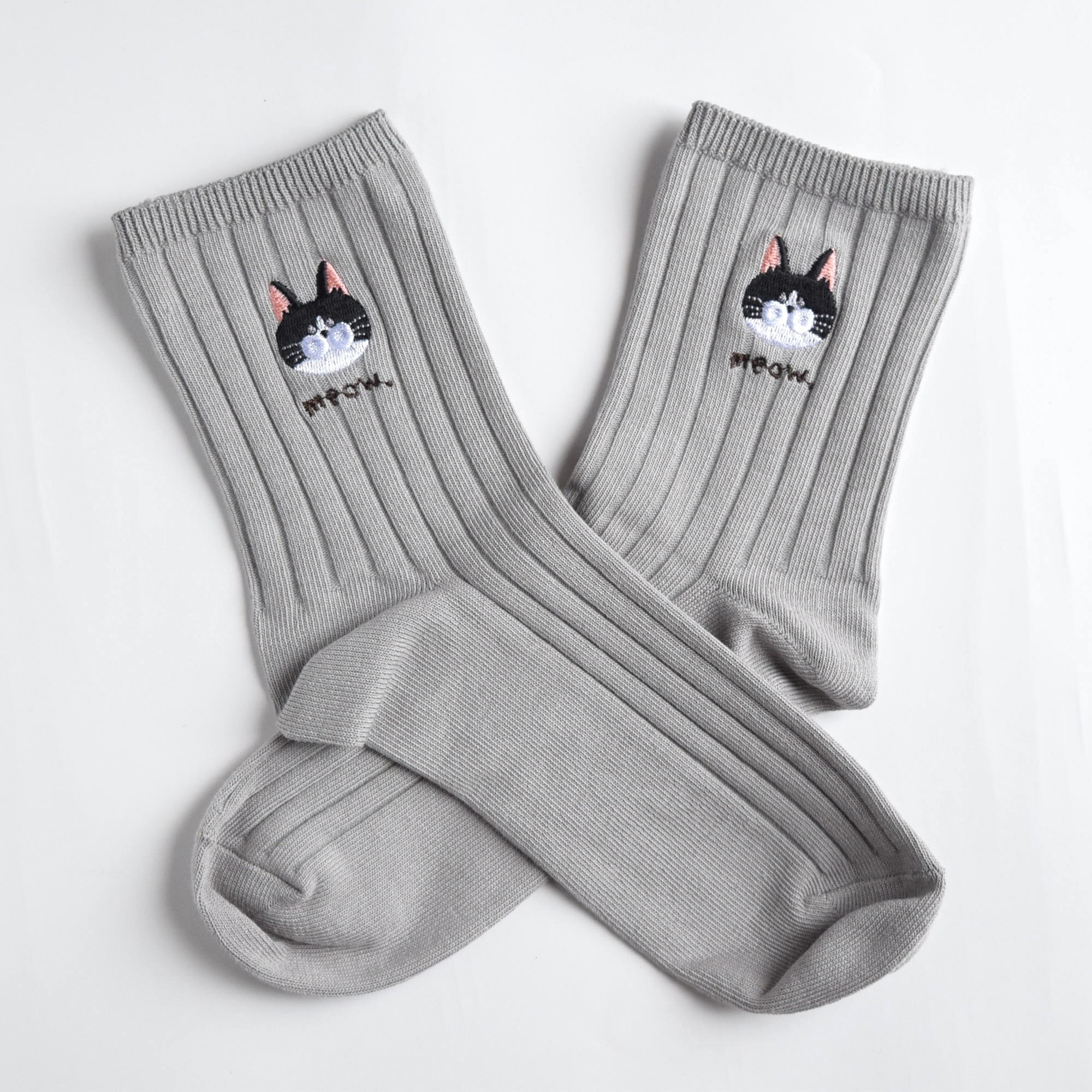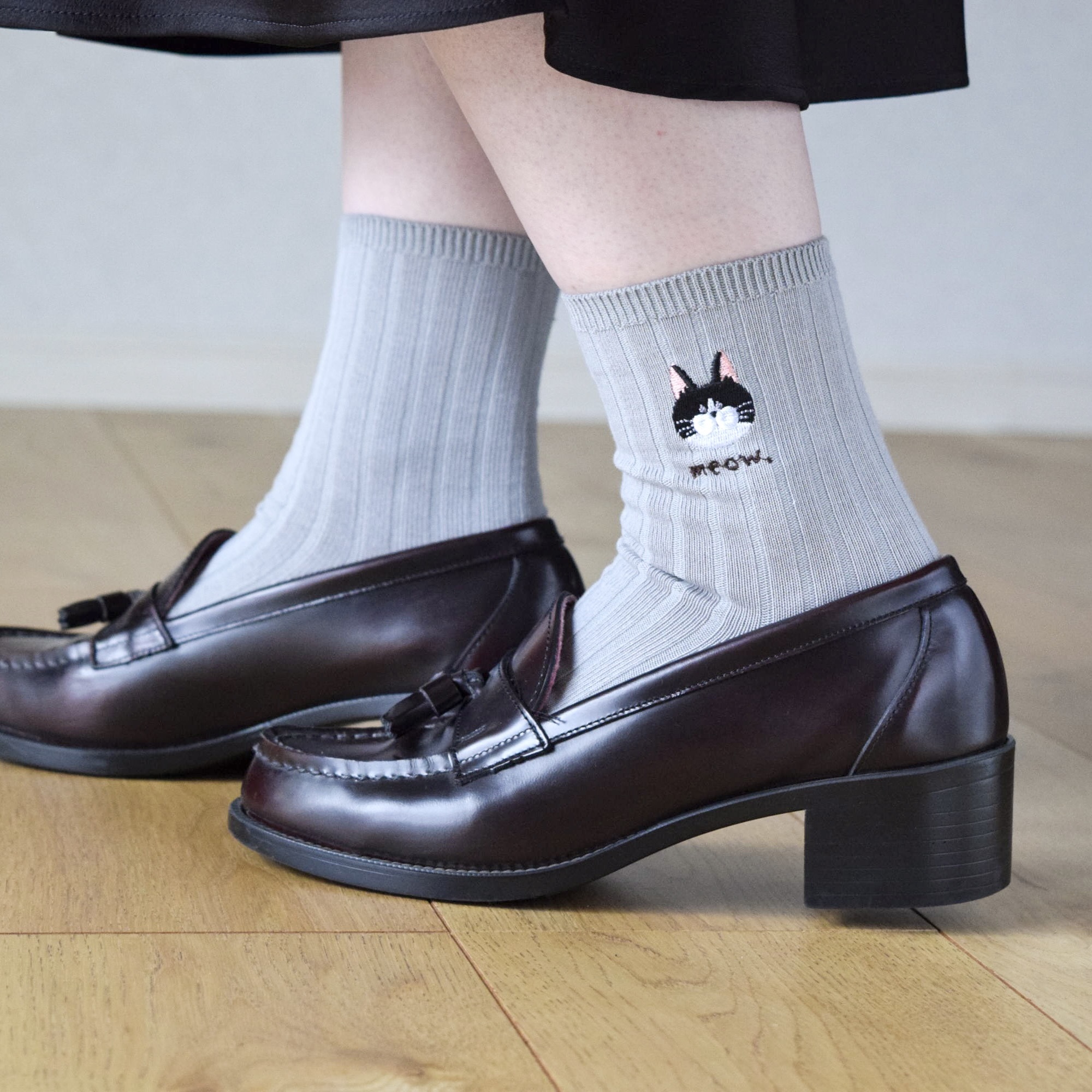 選べる猫29種!レディース刺繍ソックス【グレー】靴下 母の日 記念日 誕生日 うちの子 クリスマス