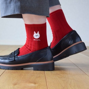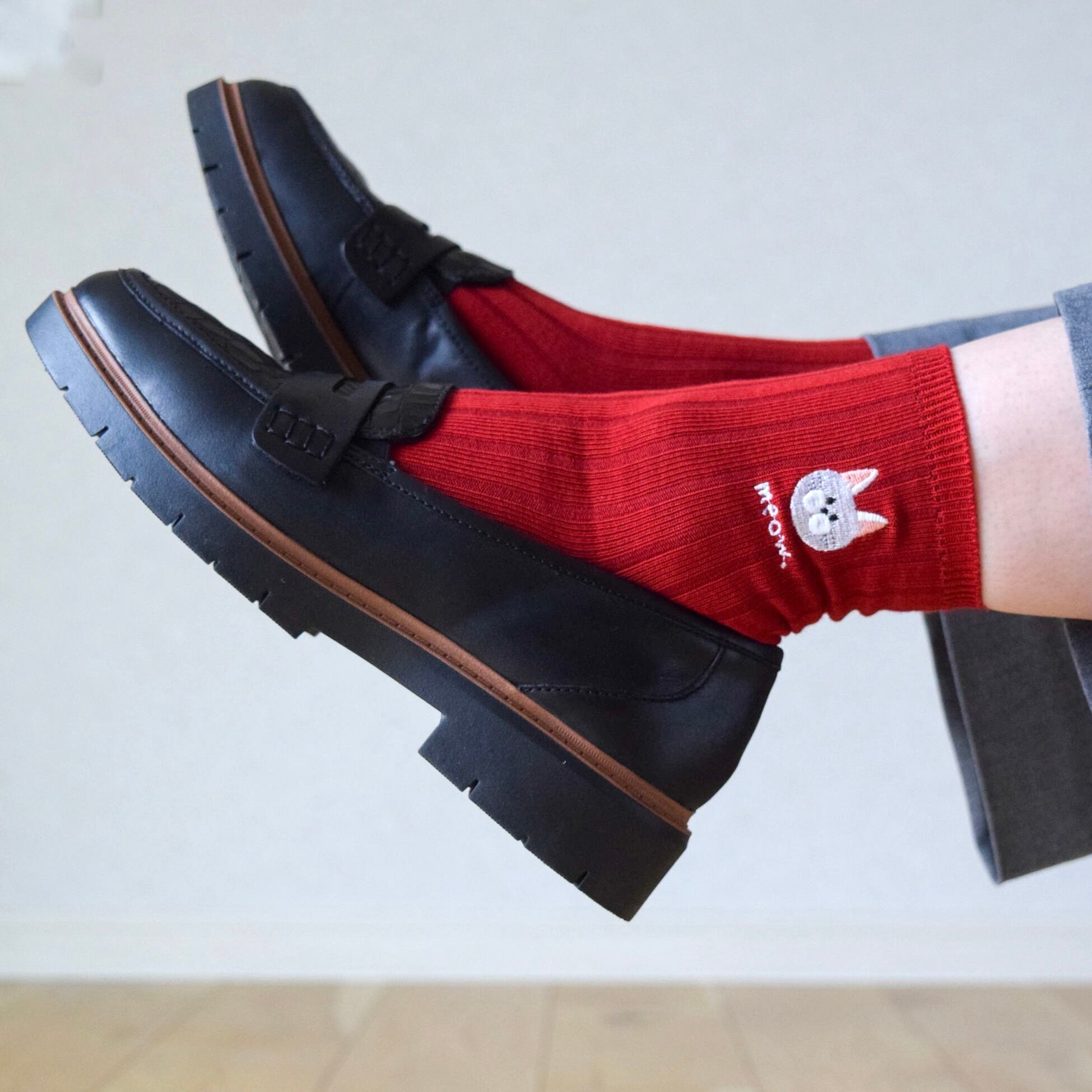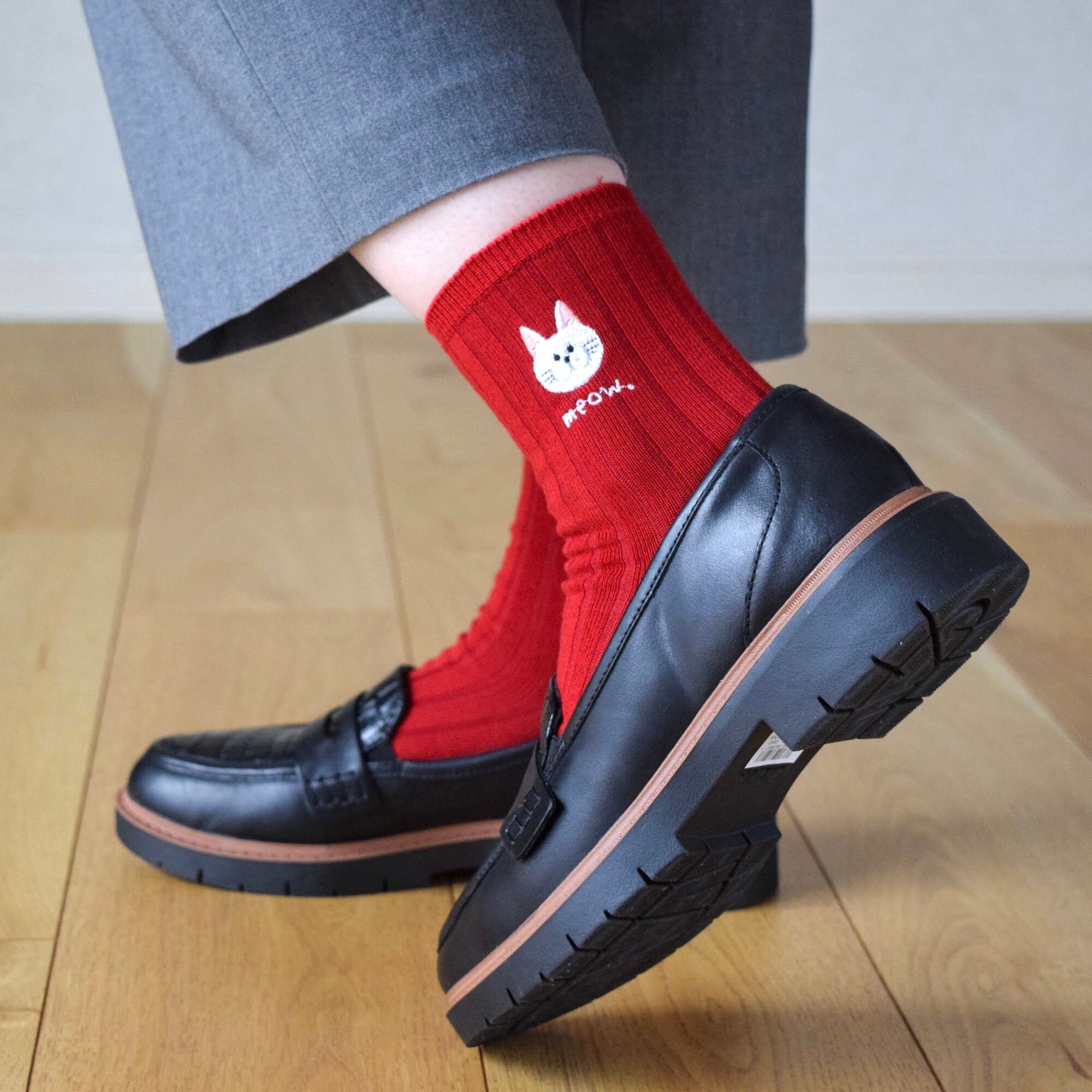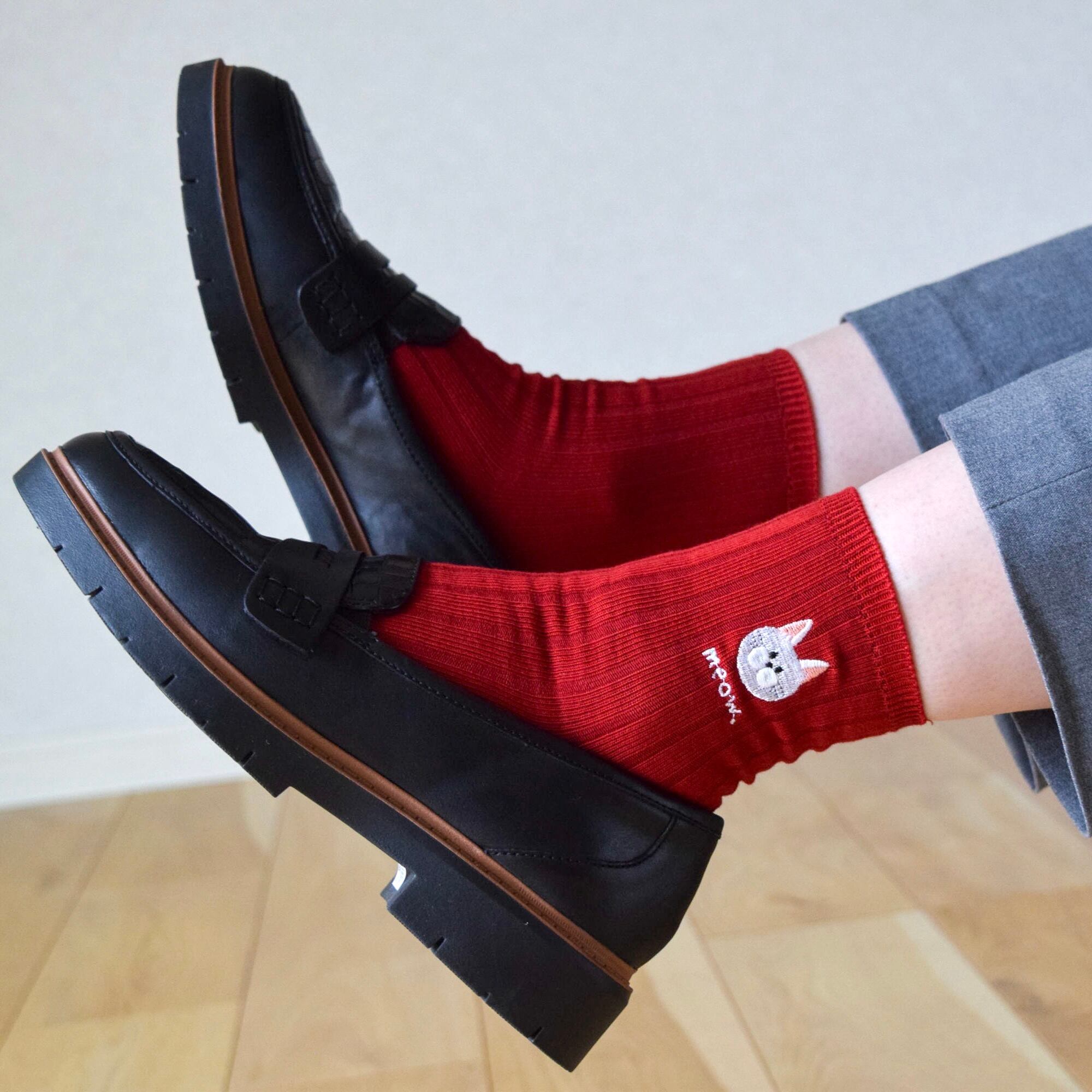 選べる猫29種!レディース刺繍ソックス【レッド】靴下 母の日 記念日 誕生日 うちの子 クリスマス