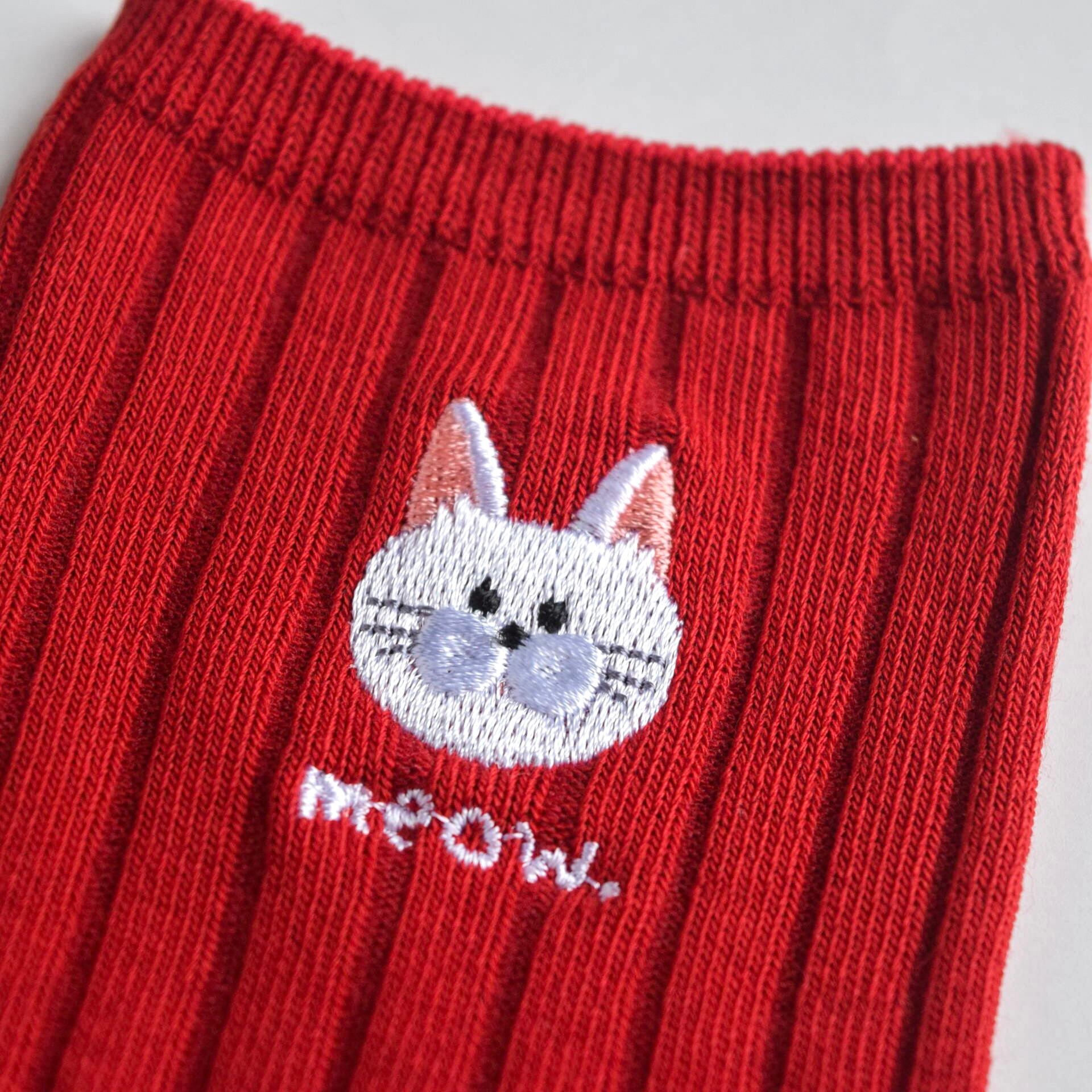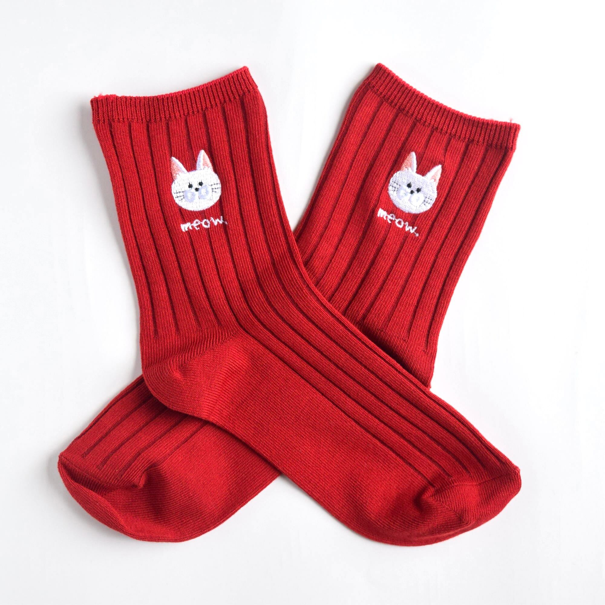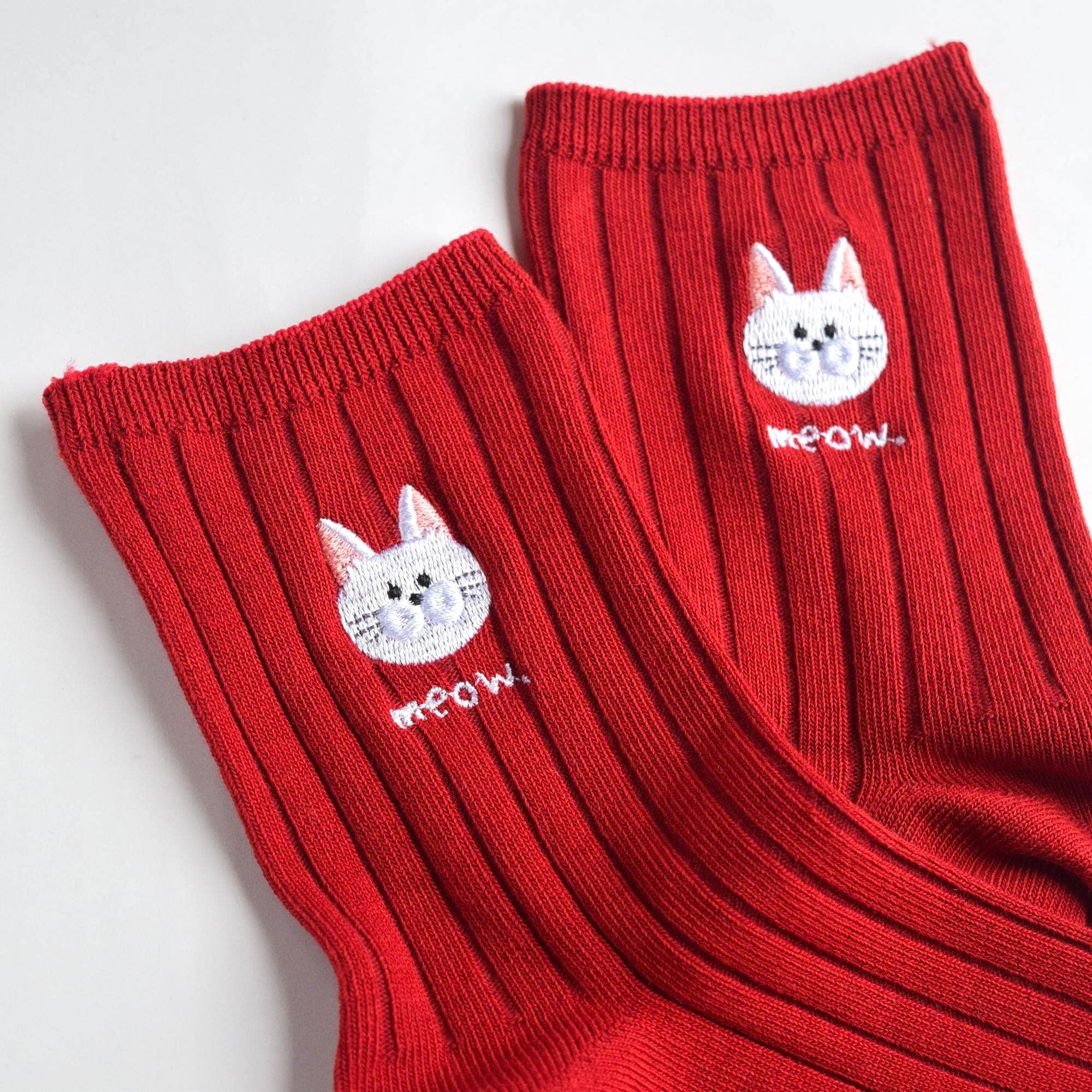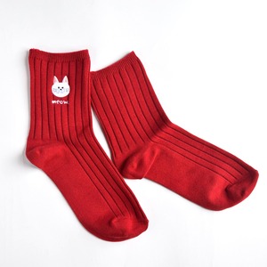 選べる猫29種!レディース刺繍ソックス【レッド】靴下 母の日 記念日 誕生日 うちの子 クリスマス