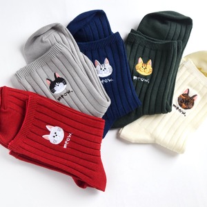 \ 選べる猫29種!ワンポイント刺繍のレディースソックス /