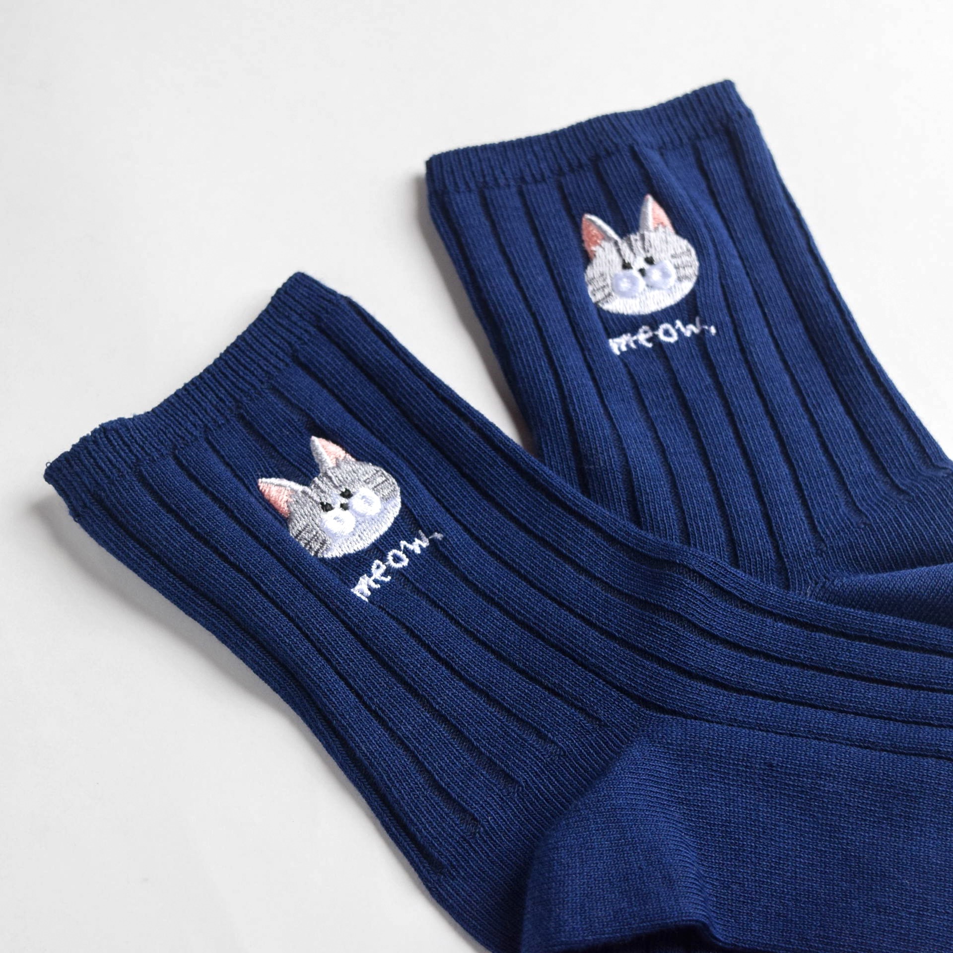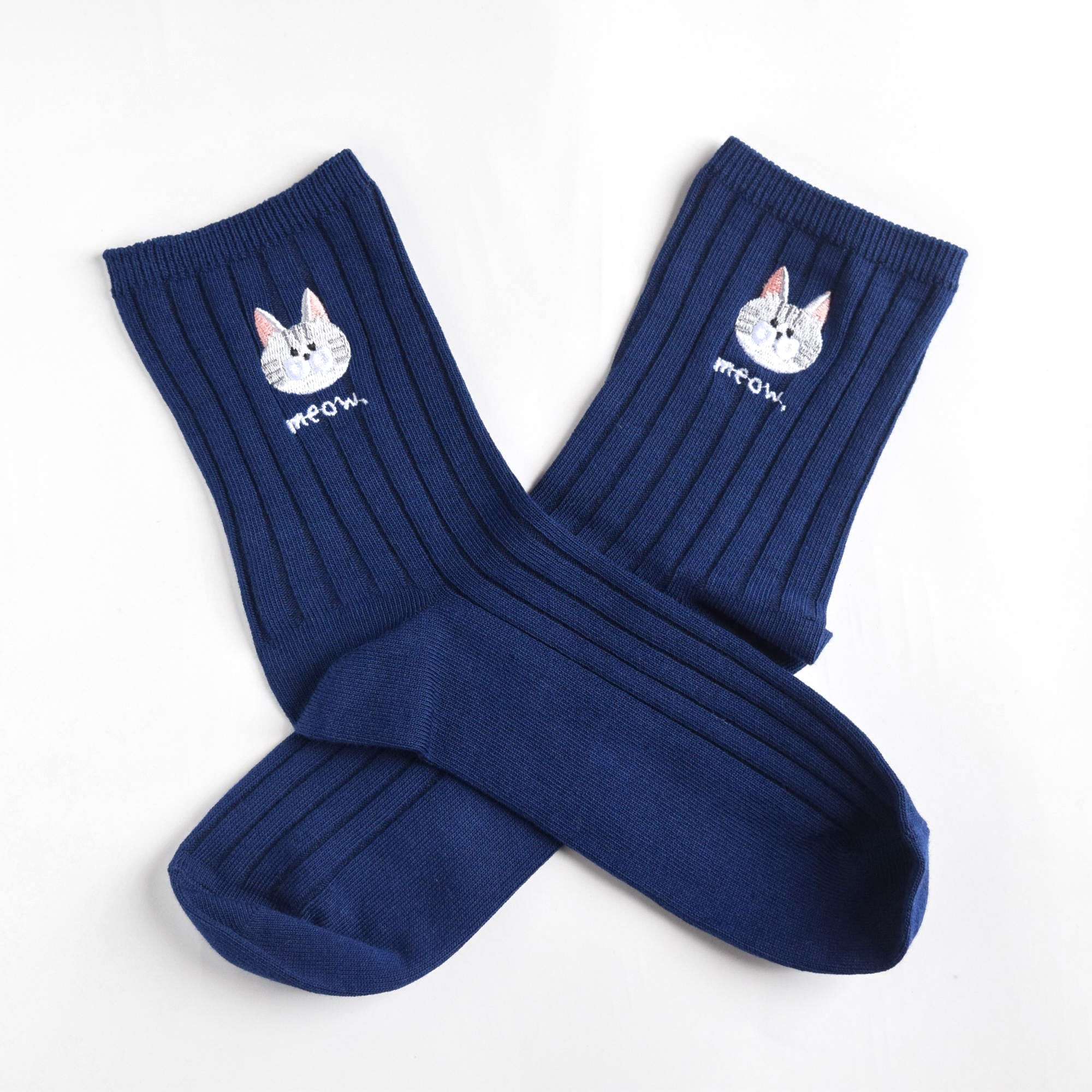 選べる猫29種!レディース刺繍ソックス【ネイビー】靴下 母の日 記念日 誕生日 うちの子 クリスマス
