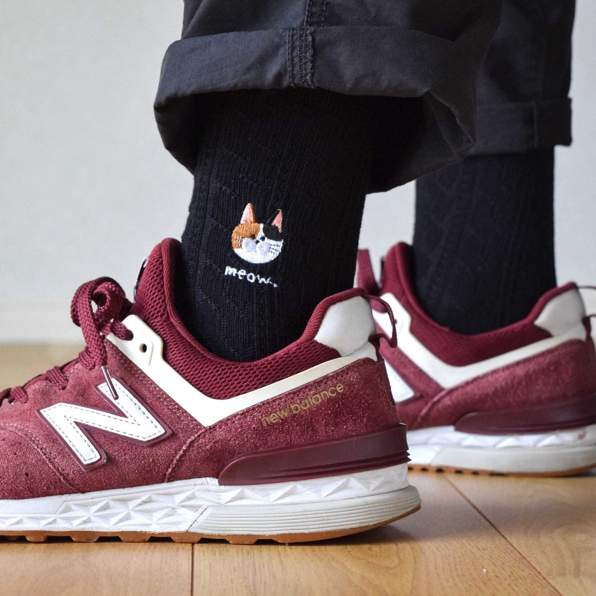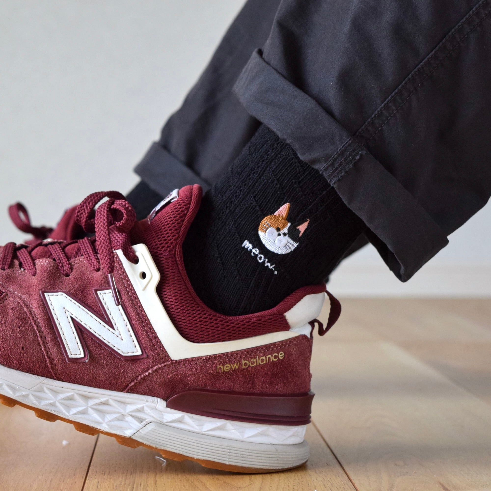【2足セット】選べる猫29種!メンズ刺繍ソックス【選べる4色】靴下 クリスマス 記念日 誕生日 うちの子