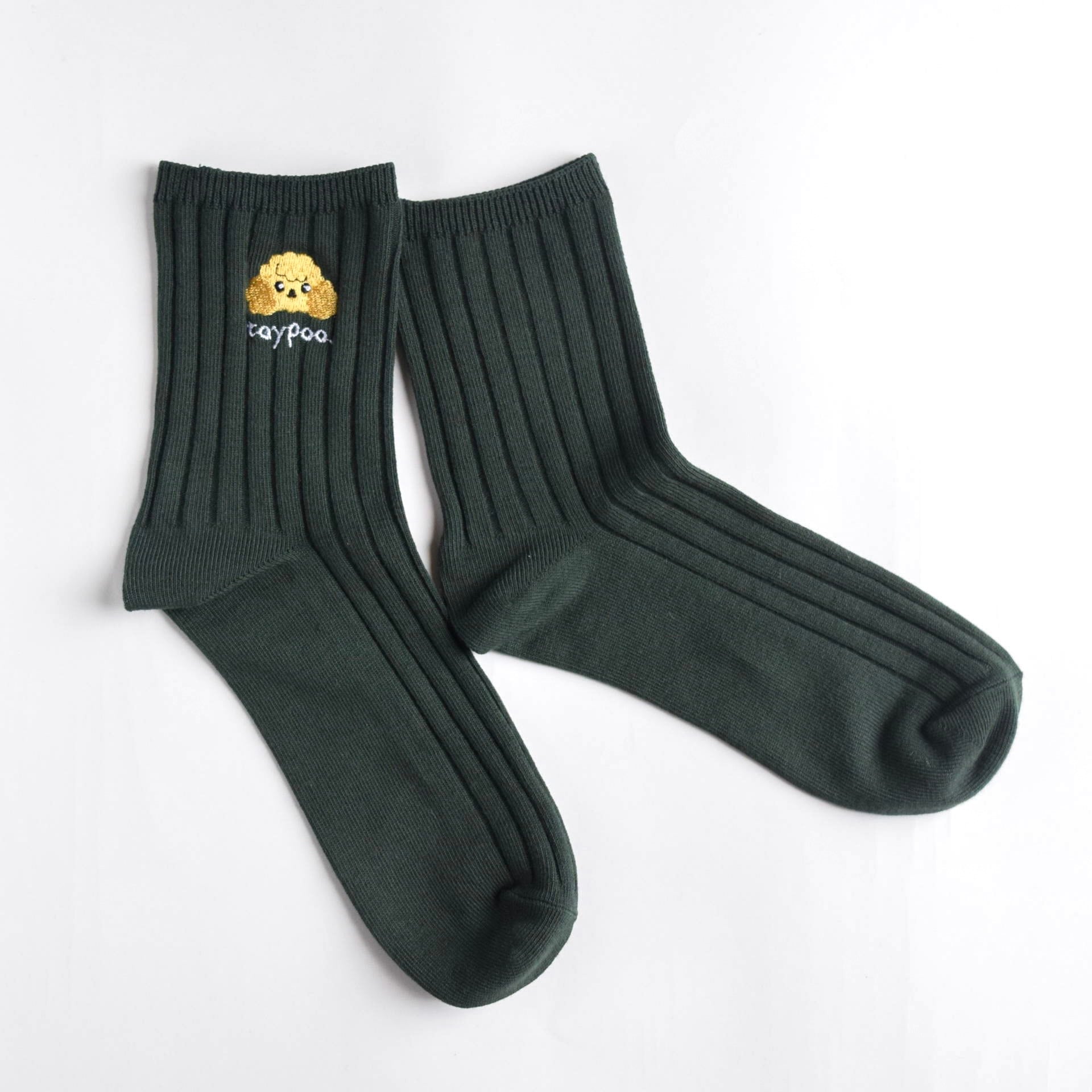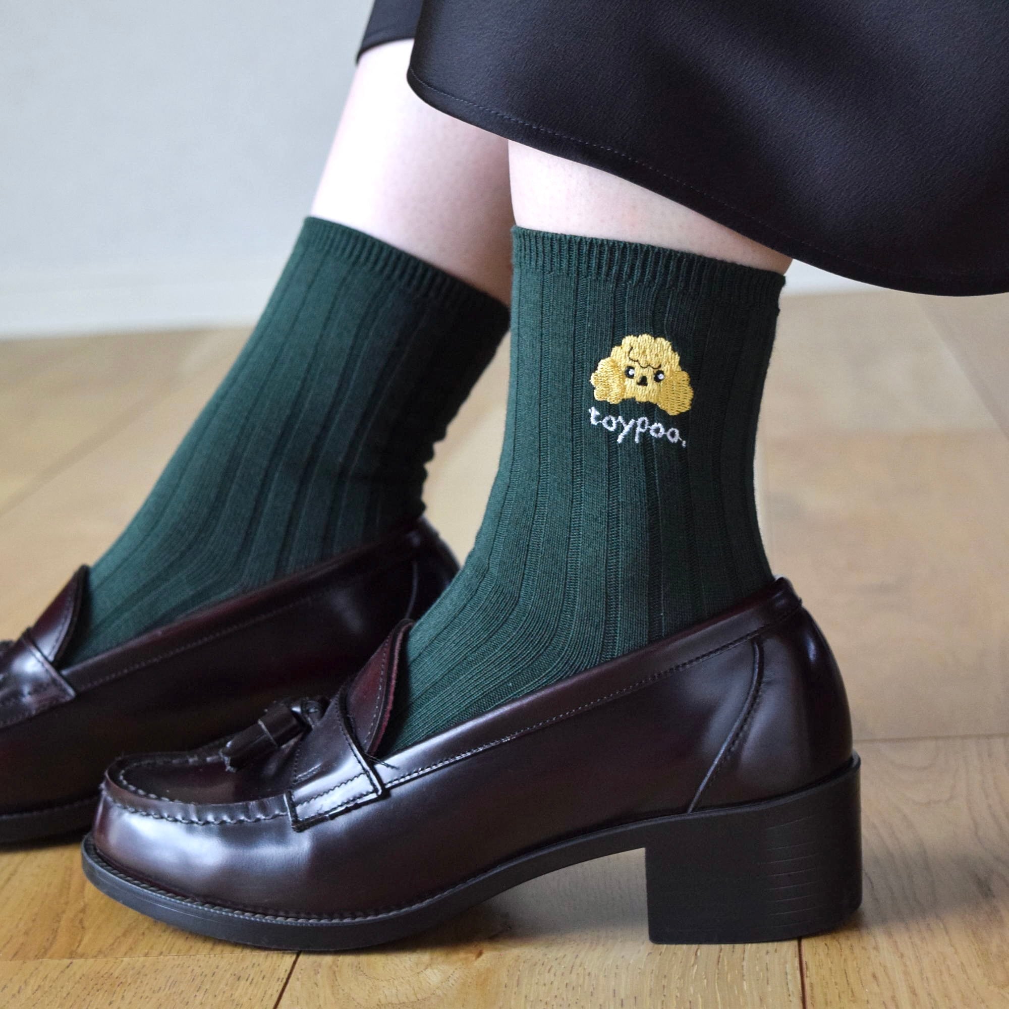 選べる犬74種!レディース刺繍ソックス【グリーン】靴下 クリスマス 記念日 誕生日 うちの子 母の日