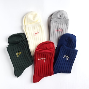 【2足セット】レディース 名入れ刺繍ソックスセット【選べる5色】靴下 記念日 誕生日 クリスマス 母の日