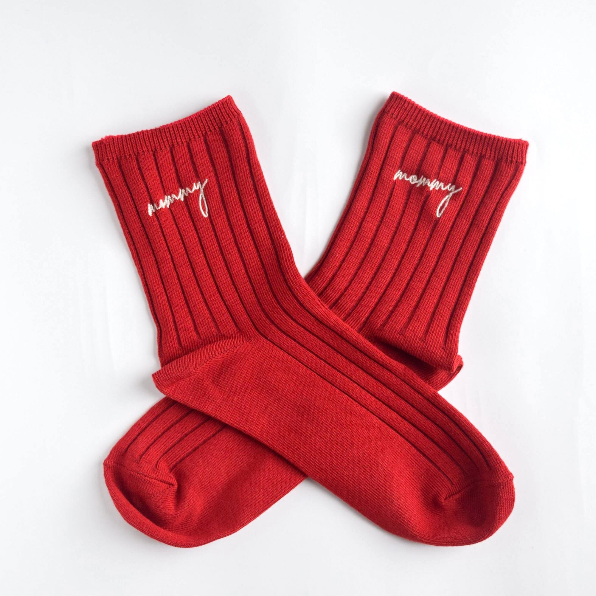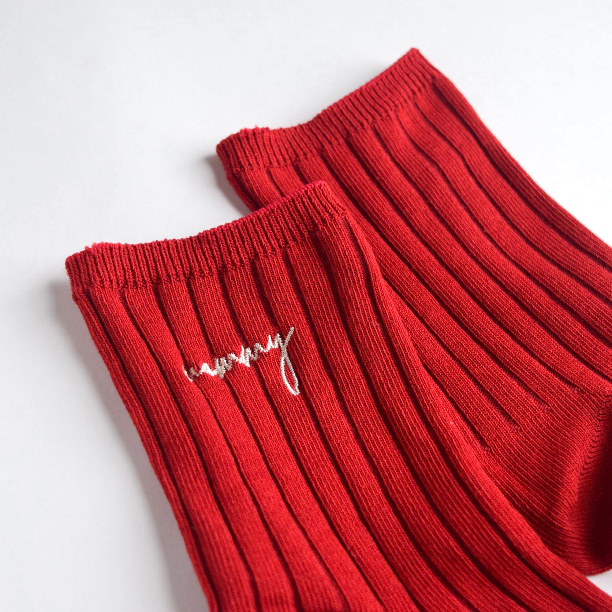 レディース 名入れ刺繍ソックス【レッド】靴下 記念日 誕生日 クリスマス 母の日