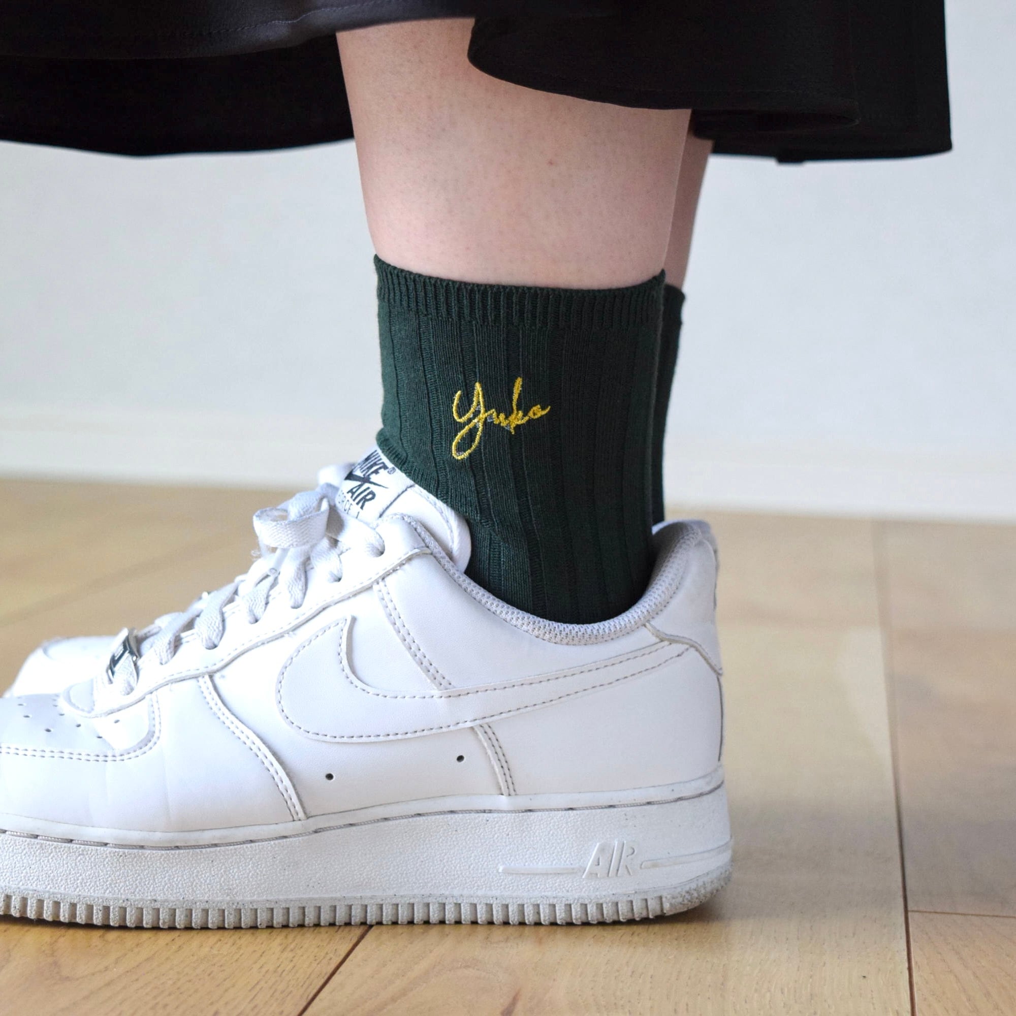 レディース 名入れ刺繍ソックス【グリーン】靴下 記念日 誕生日 クリスマス 母の日