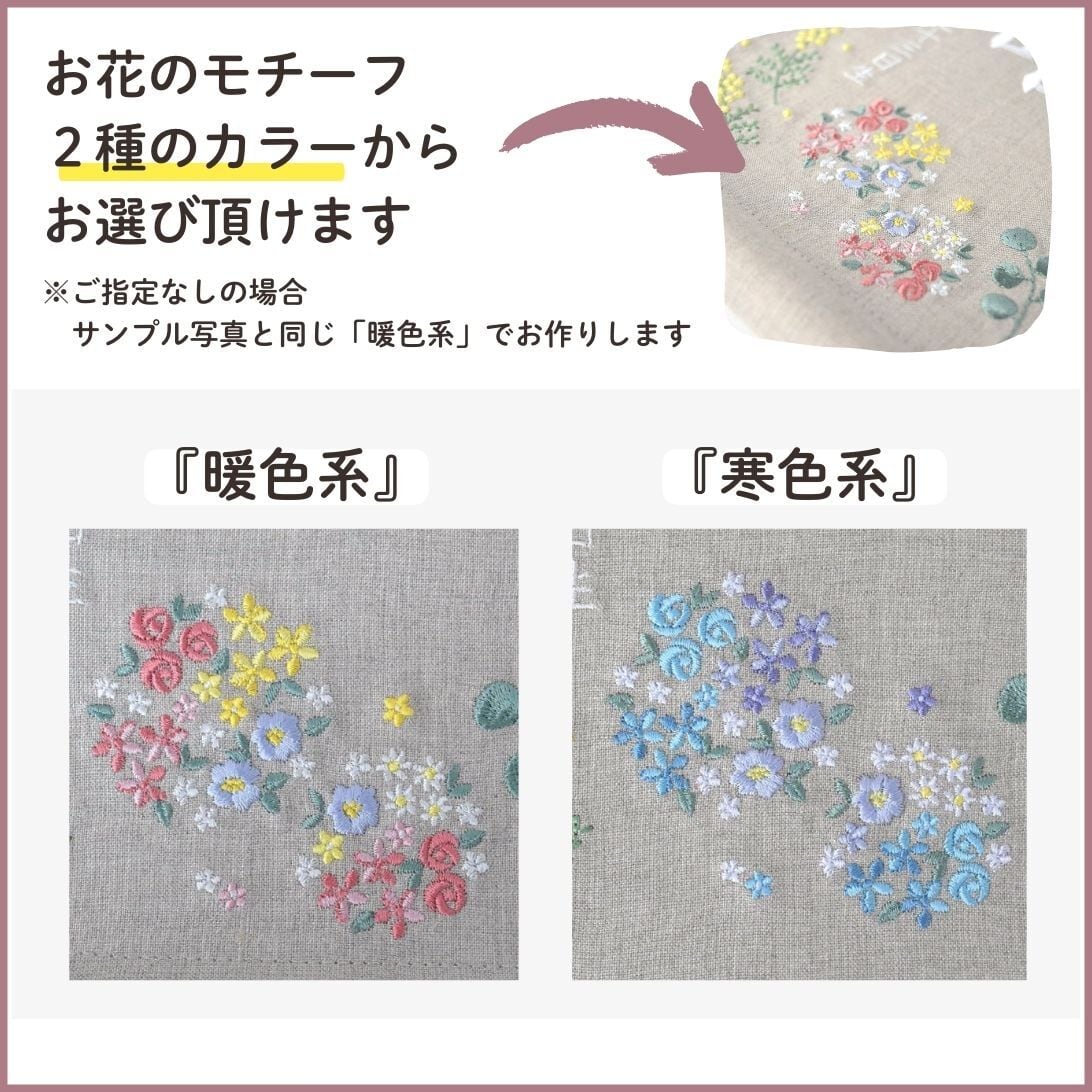 ・刺繍部分には直接アイロンを当てないようお願い致します