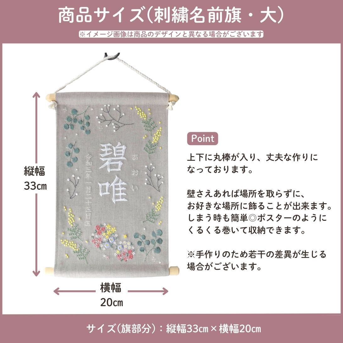 大人気!刺繍名前旗【ボタニカル|ベージュグレー|大サイズ】出産祝い こどもの日 端午の節句 五月人形 ひな祭り 桃の節句