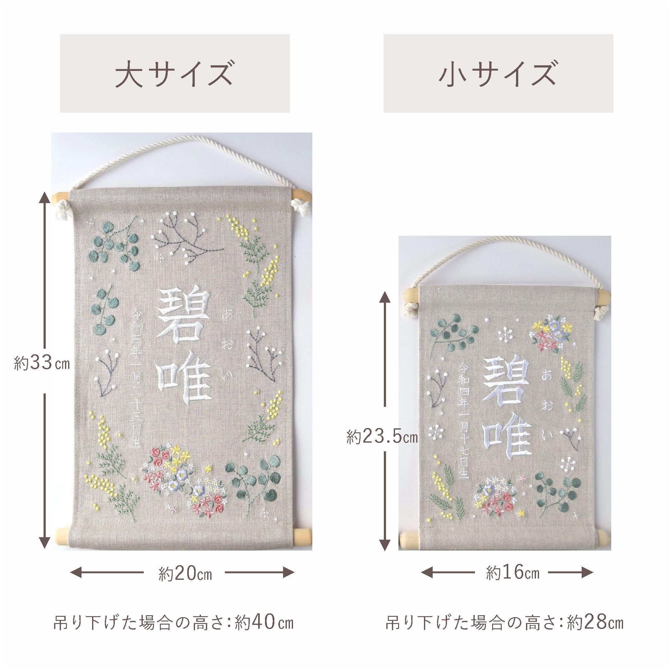 刺繍命名タペストリー《ボタニカル / ネイビー / 大サイズ》名前旗 出産祝い こどもの日 端午の節句 ひな祭り 桃の節句