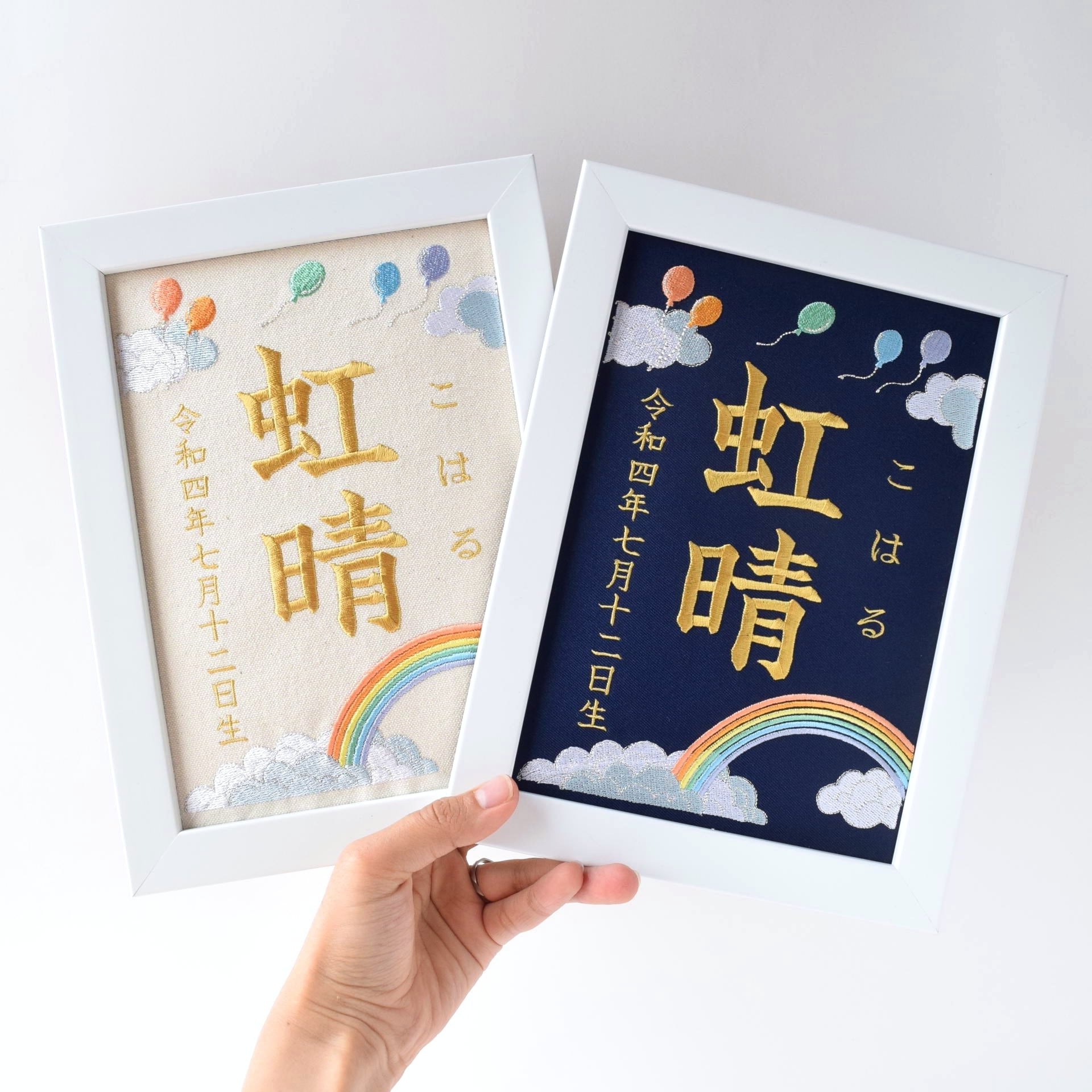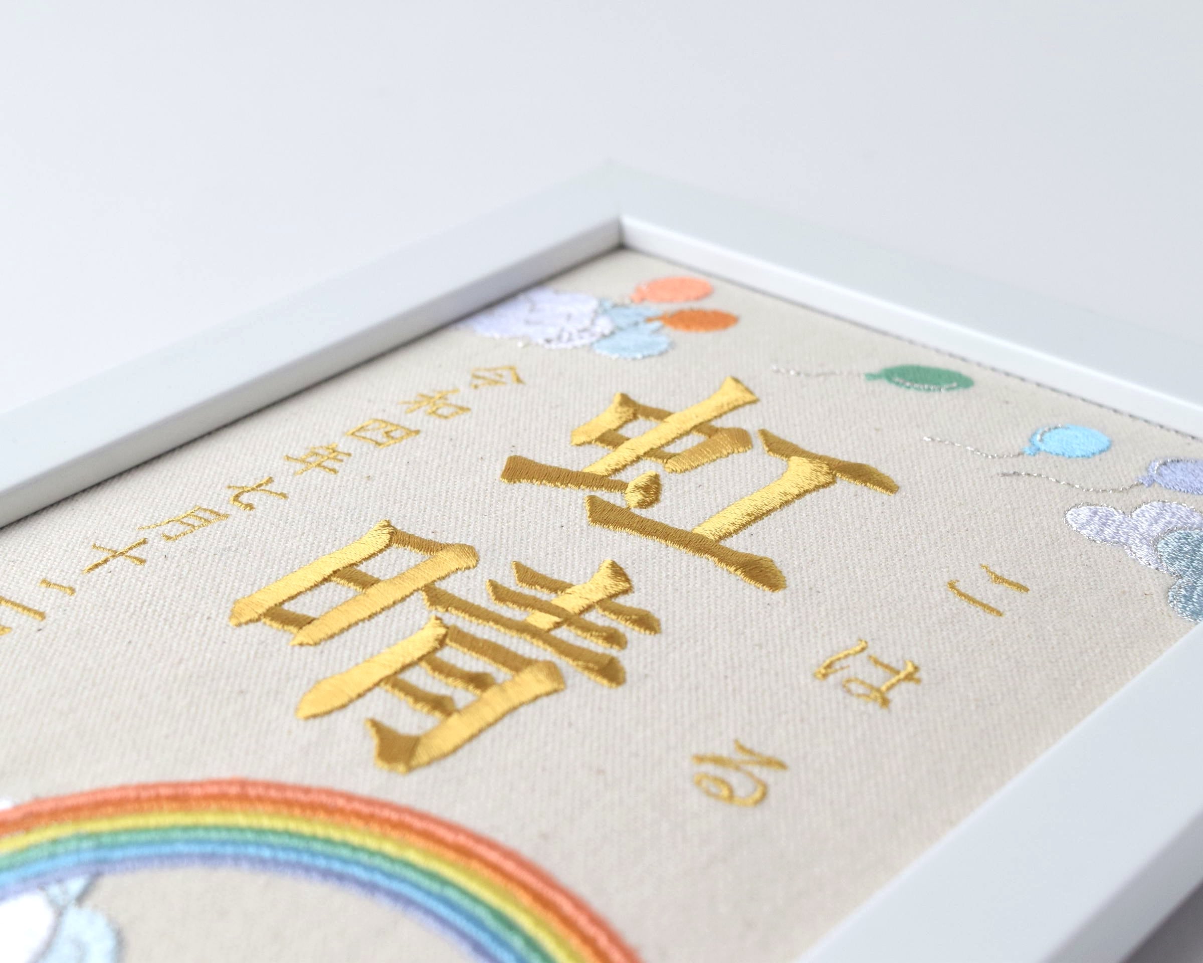 刺繍命名ボード《レインボー》A5サイズ 名前旗 出産祝い 虹 命名書 ひな祭り 桃の節句