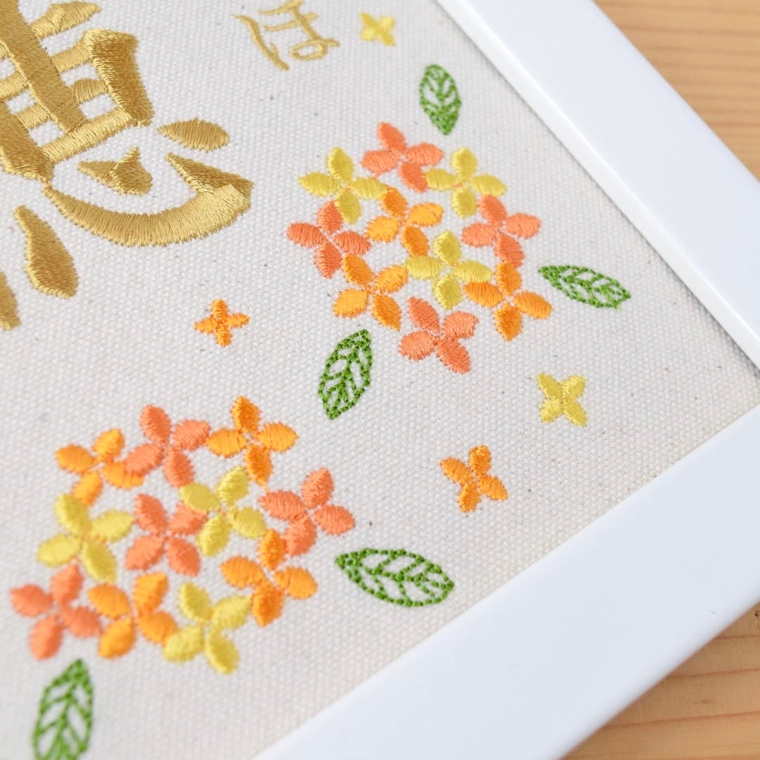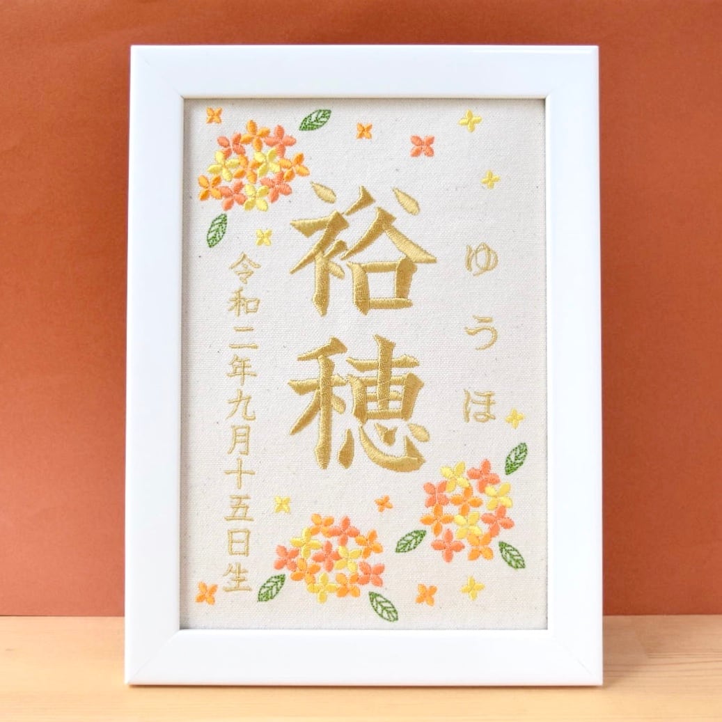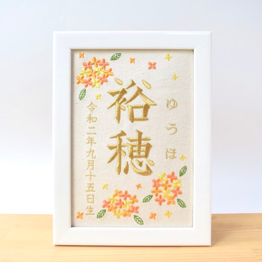 刺繍命名ボード《金木犀》A5サイズ 名前旗 出産祝い 秋 命名書 ひな祭り 桃の節句