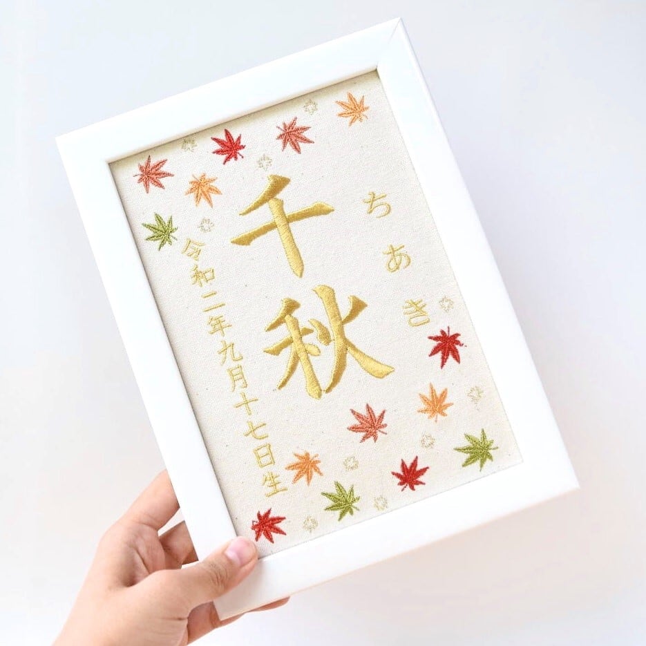 刺繍命名ボード《紅葉》A5サイズ 名前旗 出産祝い 秋 命名書 ひな祭り 桃の節句