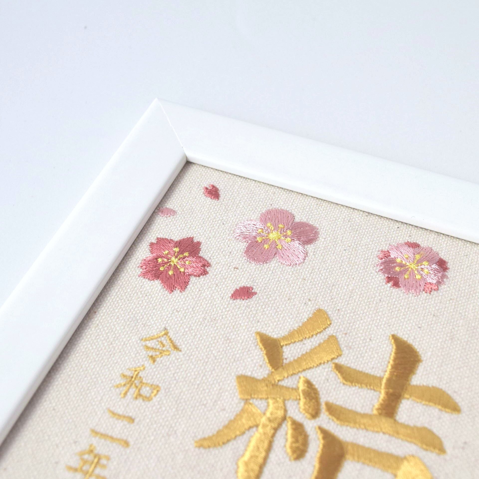 刺繍命名ボード《桜と梅》A5サイズ 名前旗 出産祝い 春 命名書 ひな祭り 桃の節句