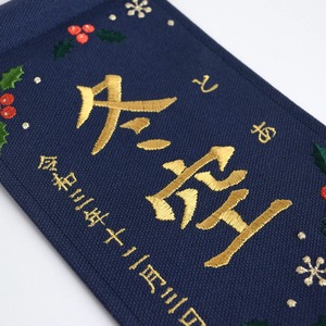 【スタンド付】小さな刺繍命名タペストリー《柊 / ネイビー》名前旗 命名書 出産祝い 冬 クリスマス こどもの日 端午の節句 ひな祭り 桃の節句