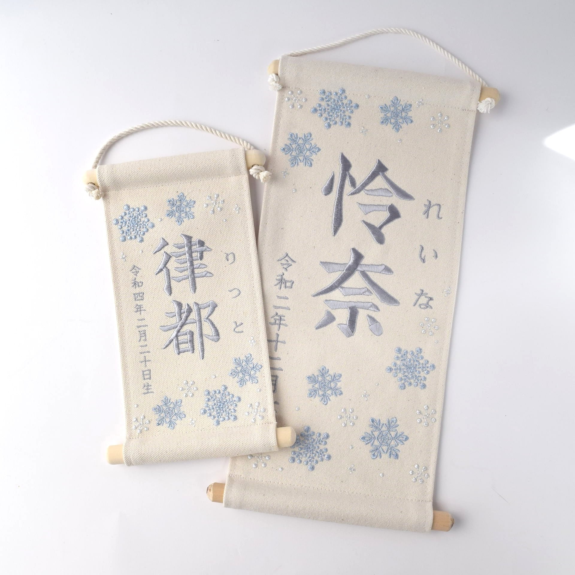 【スタンド付】小さな刺繍命名タペストリー《雪の結晶》名前旗 命名書 出産祝い こどもの日 端午の節句 ひな祭り 桃の節句