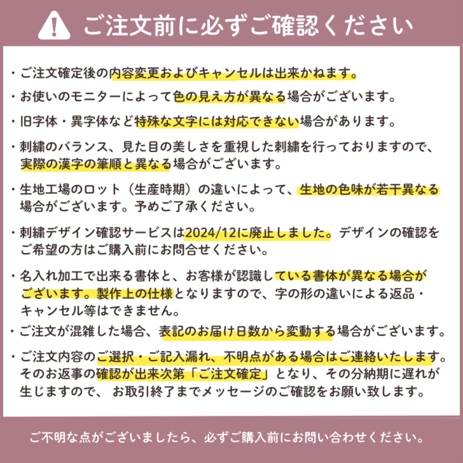 ※刺繍命名書をご注文の方は必ずご確認ください※