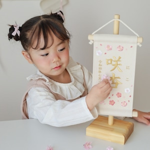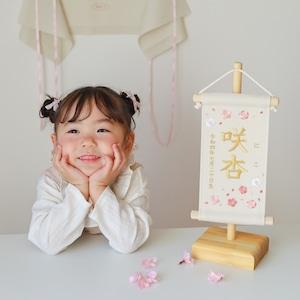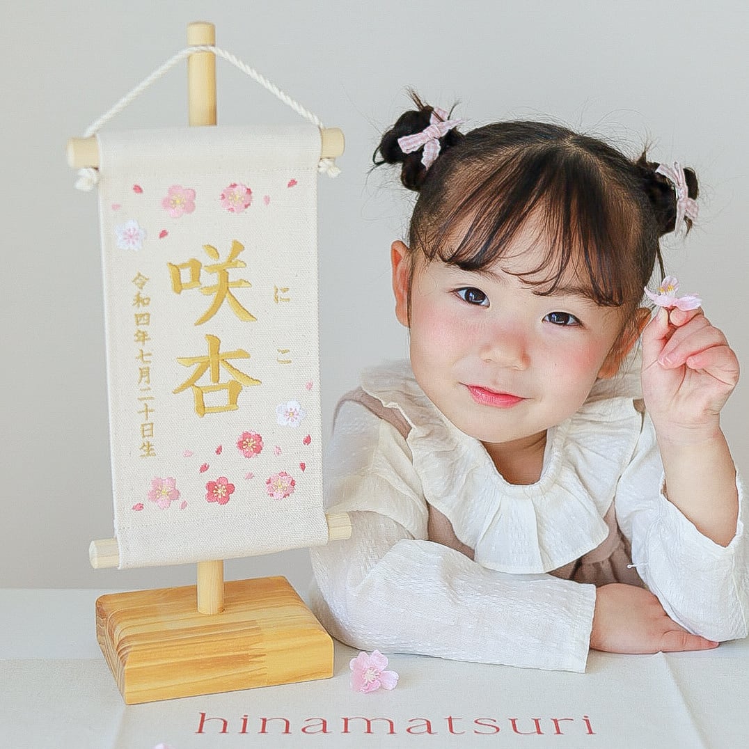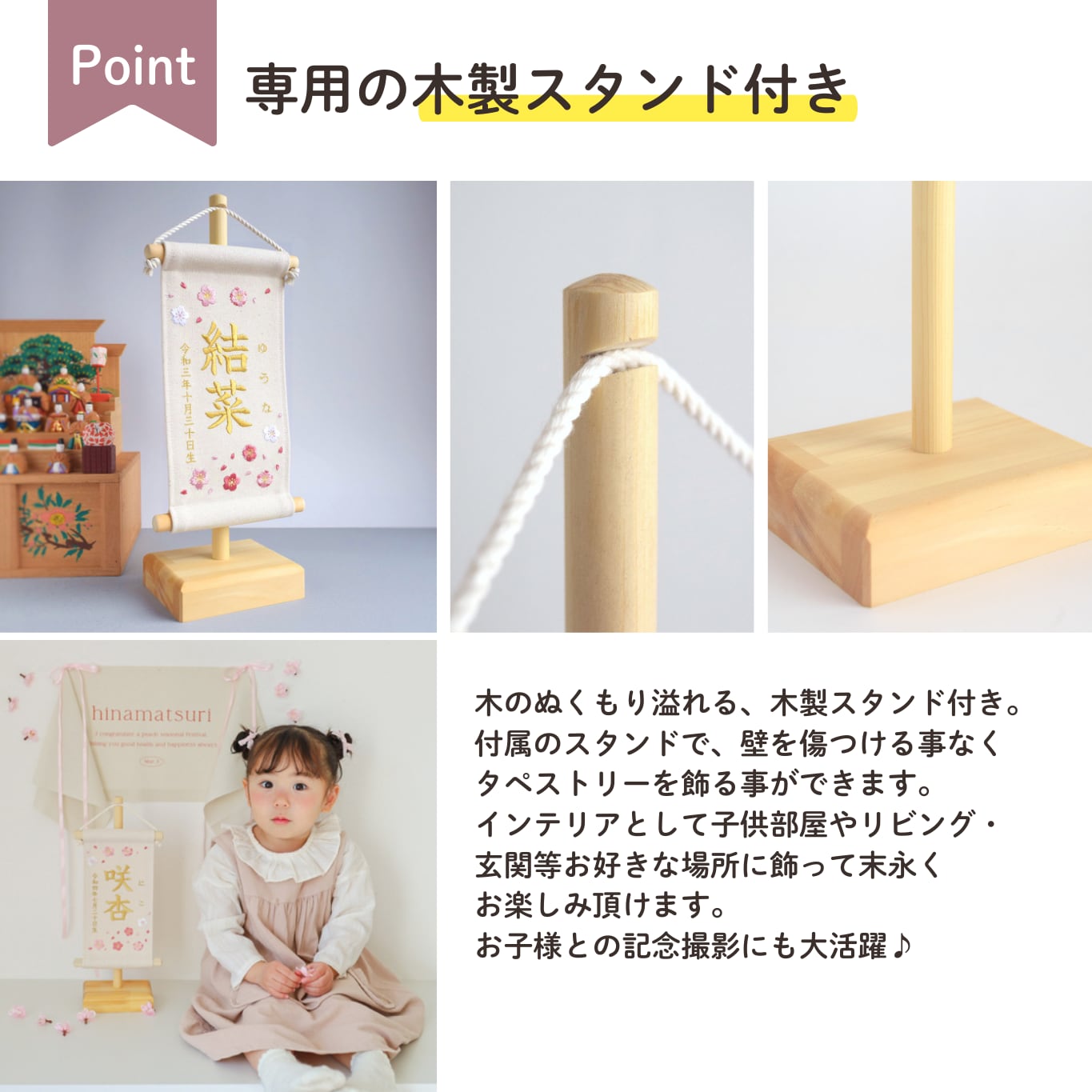 【スタンド付】小さな刺繍命名タペストリー《桜と梅 / 小サイズ》名前旗 命名書 出産祝い こどもの日 五月人形 ひな祭り