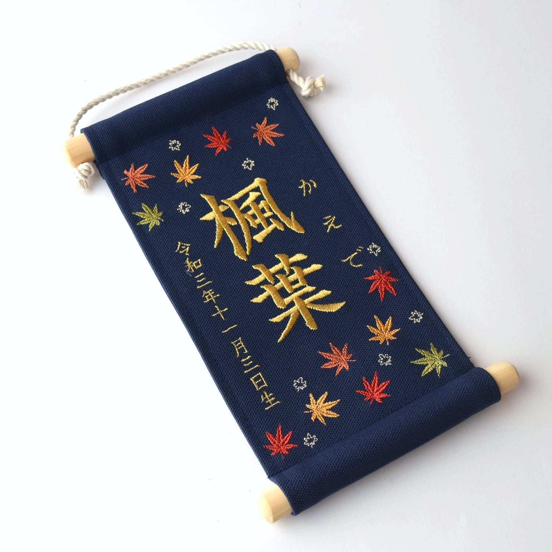 【スタンド付】刺繍名前旗【紅葉|ネイビー|小サイズ】命名書 出産祝い こどもの日 五月人形 端午の節句 ひな祭り 桃の節句 女の子 男の子