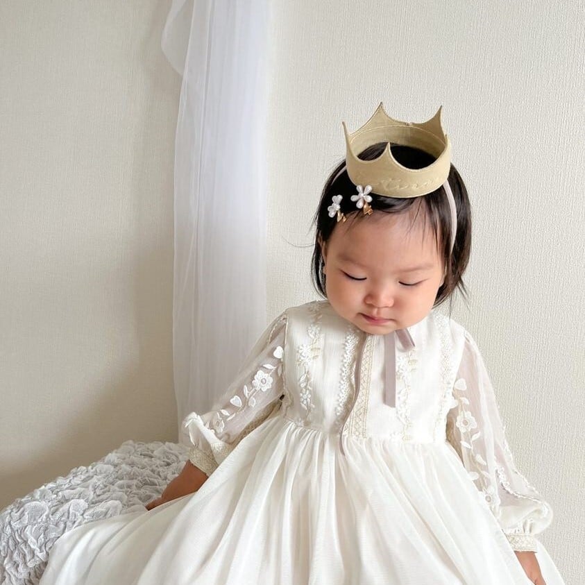 【名入れ】ふんわり軽い刺繍クラウン《ブラウン》 王冠 ベビークラウン ハーフバースデー ティアラ