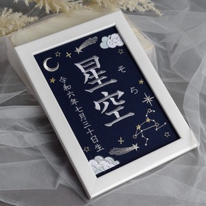 刺繍命名ボード《星空 / ネイビー》A5サイズ 名前旗 出産祝い お七夜 命名書 星座